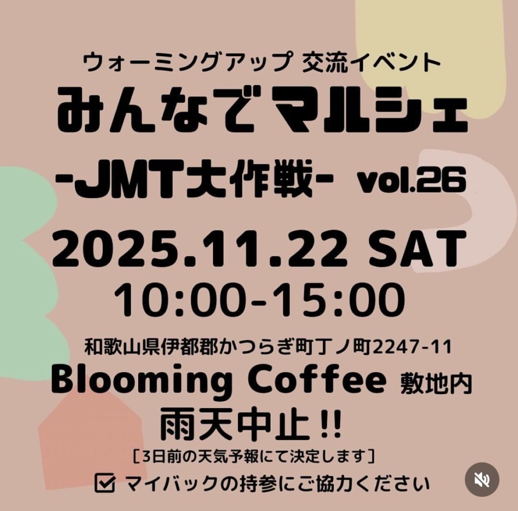 2025-10-31 Home › › みんなでマルシェvol.26 みんなでマルシェvol.26 開催日: 2025年11月22日 10:00 AM - 3:00 PMカテゴリー: イベント 久々、当店での開催です!詳細は「JMT大作戦」検索 ‼ 関連記事 珈琲豆は、インドネシア バリ アラビカ 神山 極深煎りです。アフォガートにどうぞ! ハート型の珈琲豆を見つけたので、ちょこっと煎ってみました。 温泉で心も体もリフレッシュ♨ “ミルク出しコーヒー” を作ってみました! アウトドアコーヒーを満喫してきました!山と川と珈琲と・・・